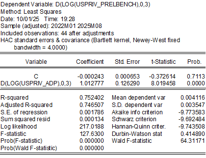 We won’t have the BLS series for private NFP as of Friday. Can we use the ADP-Stanford Digital Laboratory series (which missed consensus by 84K on the downside)
