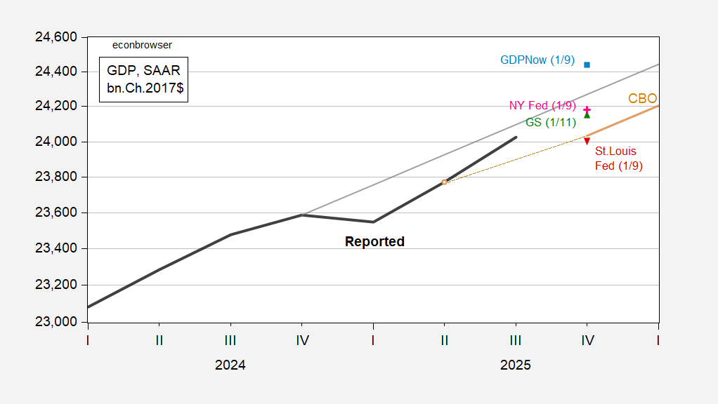 GDPNow for Q4 at 5.1% is considerably higher than Goldman Sachs at 3.1%, and St. Louis Fed at essentially zero.